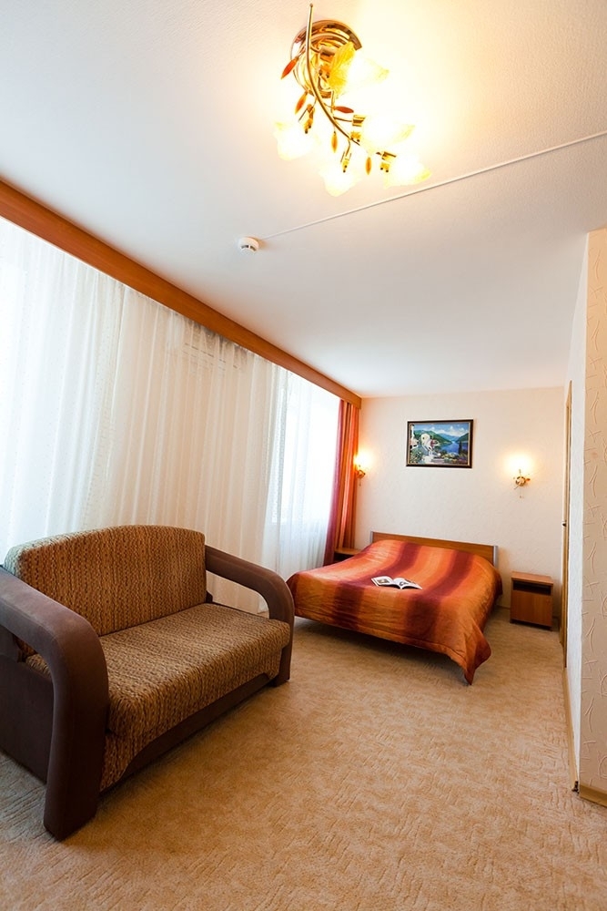 В номере: 2-спальная кровать, мягкий раскладной диван, ТВ, журнальный стол, холодильник, стенка для посуды, шкаф, кондиционер.